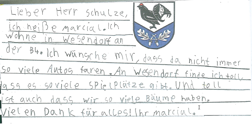 Im Folgenden erhalten Sie einen Einblick, wie die Kinder der Grundschule am Lerchenberg ihren Wohnort Wesendorf sehen.
